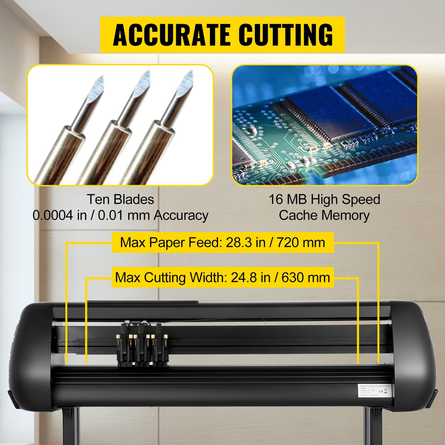 The maximum paper feed is 28.3 inches (720 mm), while the maximum cutter width is 24.8 inches (630 mm). This top-notch vinyl cutter machine has a body made of thicker, superior metal and strong stepper motors.